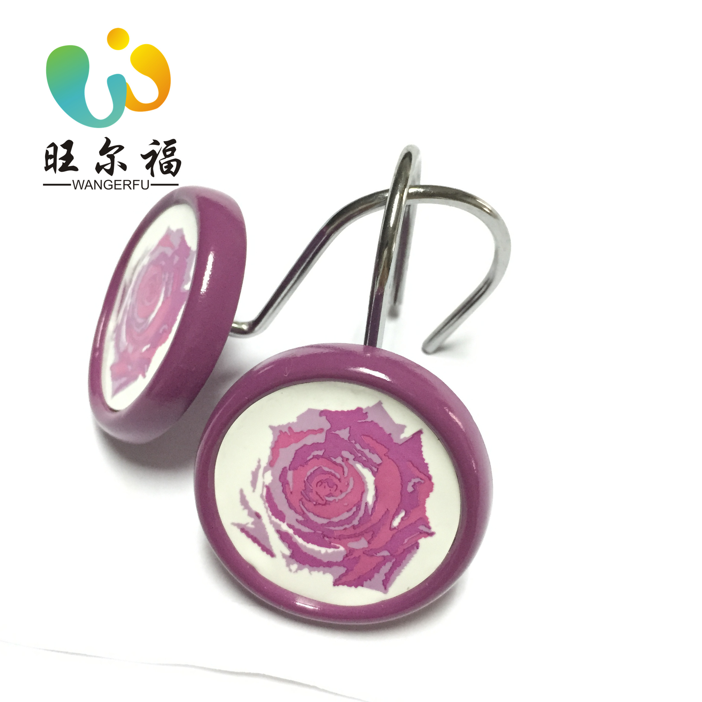 浴帘挂钩玫瑰造型,采用花纸工艺,由旺尔福家居设计出品